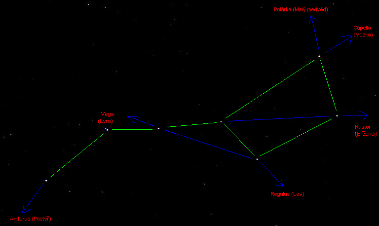 Mapka přední části Velké medvědice.