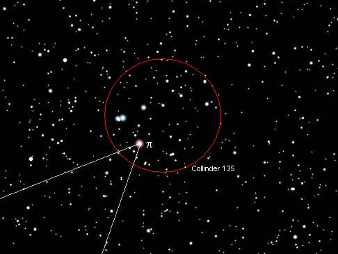 Přibližná poloha otevřené hvězdokupy Collinder 135 v Galaxii.