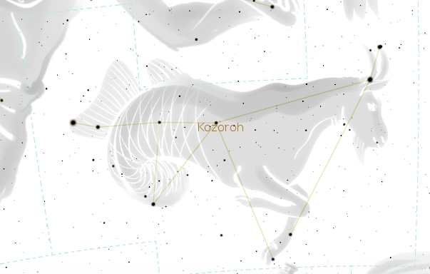 Kozoroh je poměrně nevýrazným zvířetníkovým souhvězdím jižní oblohy. Bylo známé již ve starověku. U nás nevystupuje příliš vysoko nad obzor. Rozkládá se mezi Střelcem a Vodnářem. Na starých hvězdných mapách bývá zobrazováno jako kozorožec s rybím ocasem. Babylóňané ho nazývali Kozlí ryba. Představuje Pana - řeckého boha lesů, polí, stád a pastýřů. V kozla se přeměnil, když utíkal před netvorem Tyfonem po souši, rybí ocas mu narostl, když před ním skočil do vody. Přestože byl k lidem přívětivý, báli se ho. Dodnes se používá termín "panický strach", který zažívají někteří lidé, ocitnou li se sami v lese nebo na opuštěném místě. Nejasnější hvězdy Kozoroha vytvářejí na obloze obrazec ve tvaru poněkud deformovaného trojúhelníku. Tvoří jej stálice 3. hvězdné velikosti a slabší. Nejjasnější z nich nese jméno Deneb Algedi ( Delta Kozoroha ). Najdete ji ve východní části souhvězdí, v místech kde bývá zobrazován rybí ocas Kozoroha. Jde o dvojhvězdný zákrytový systém ve vzdálenosti okolo 39 světelných roků. Primární složka je bílá, průvodce má žlutou, či oranžovou barvu. Jasnost systému se mění mezi 2,9 a 3,1. magnitudy. Dabih ( Beta Kozoroha ) leží v západní části souhvězdí. S hodnotou 3,1. magnitudy je druhou nejjasnější v souhvězdí. Jde o složitý vícenásobný hvězdný systém ve vzdálenosti okolo 340 světelných roků. Pěknou, avšak pouze optickou dvojhvězdou je Algiedi ( Alfa Kozoroha ). Najdete ji v severozápadní části souhvězdí, tvoří hlavu Kozoroha. Složky 3,6. a 4,3. magnitudy dělí na obloze 6,4 úhlové minuty a můžete je rozlišit i prostýma očima.